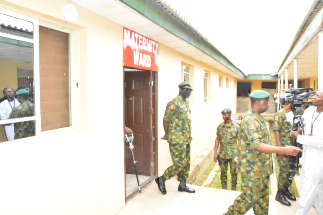 In continuation with his operational tour to North West Theatre of Operations, where he was briefed on the general conduct of Exercise SAHEL SANITY at the Nigerian Army Special Super Camp 4 Faskari in Katsina State, the Chief of Army Staff Lieutenant General Tukur Yusufu Buratai was thereafter in 8 Division Nigerian Army Sokoto where he assessed some ongoing projects embark by the Nigeria Army at Ginginya Barracks. He also visited the wounded in action soldiers at the 8 Division Medical Services and Hospital in Giginya barracks today.