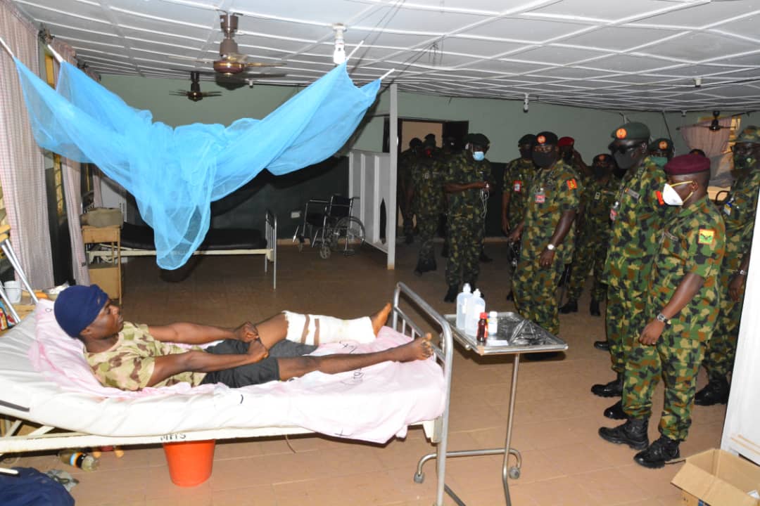 In continuation with his operational tour to North West Theatre of Operations, where he was briefed on the general conduct of Exercise SAHEL SANITY at the Nigerian Army Special Super Camp 4 Faskari in Katsina State, the Chief of Army Staff Lieutenant General Tukur Yusufu Buratai was thereafter in 8 Division Nigerian Army Sokoto where he assessed some ongoing projects embark by the Nigeria Army at Ginginya Barracks. He also visited the wounded in action soldiers at the 8 Division Medical Services and Hospital in Giginya barracks today.