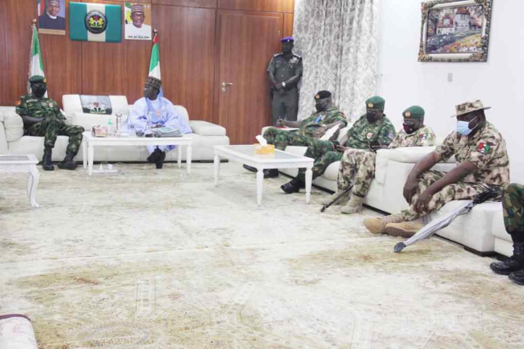 Gen Buratai briefed Governor Mai Mala Buni Wednesday December 23, 2020 at the Government House Damaturu.