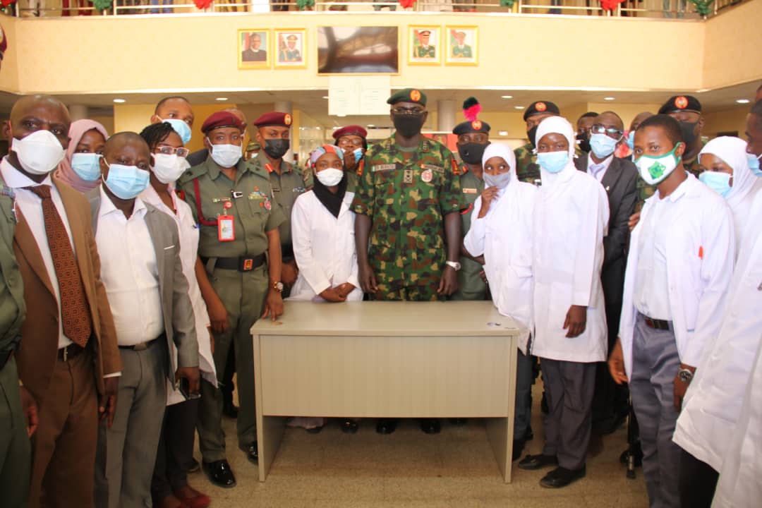 The Chief of Army Staff, Lieutenant General Tukur Yusuf Buratai on Tuesday visited the 44 Nigerian Army Reference Hospital, Kaduna, where he checked on Operations LAFIYA DOLE and SAHEL SANITY recuperating troops, inspect upgraded facilities as well as commissioned some completed projects. He later went round Comilla Barracks where he inspected ongoing 6 x thirty family blocks of Corporal and Below Quarters, 7 Senior Non Commissioned Officer’s Quarters and 3 x Nursing Quarters.
