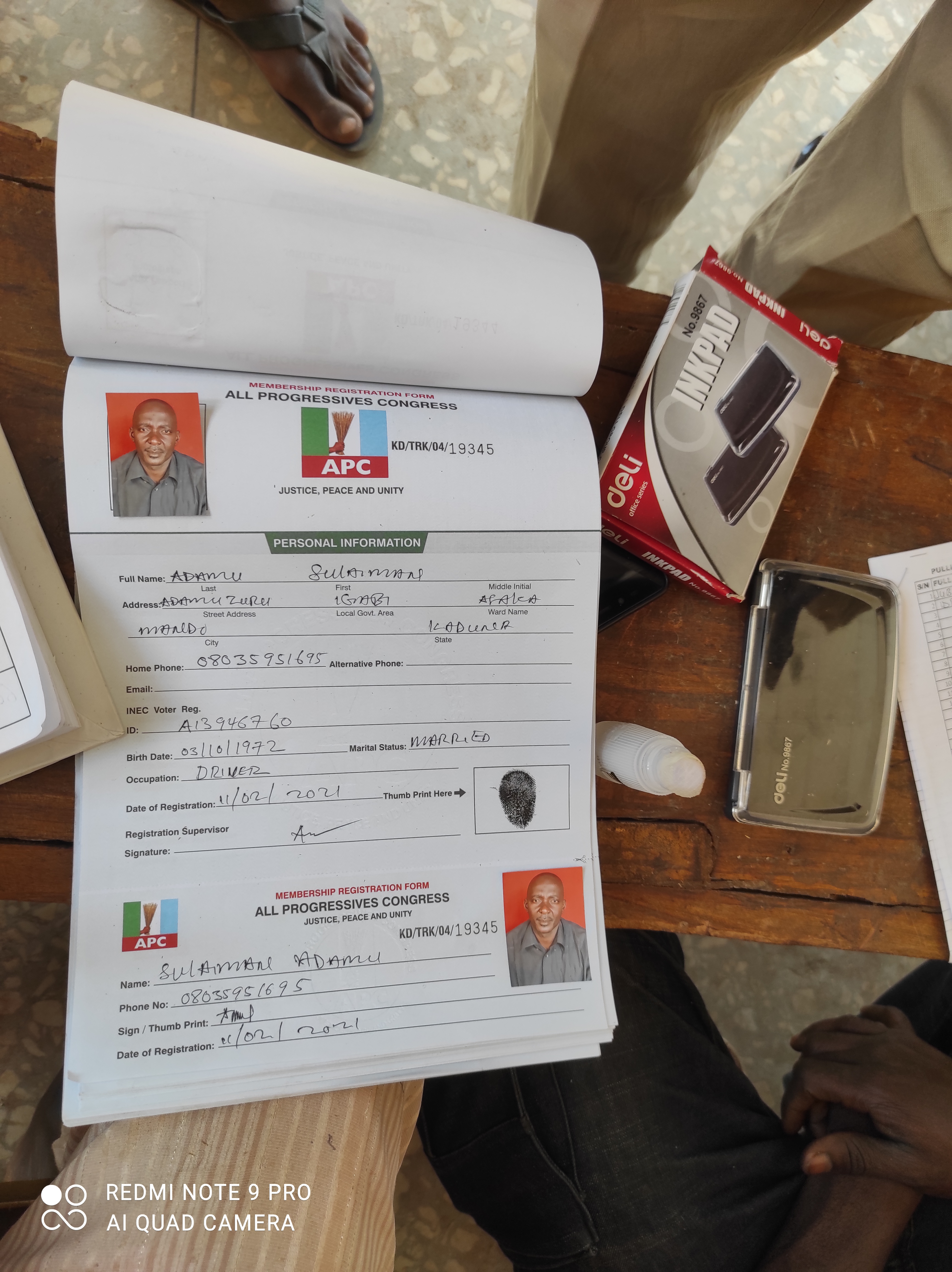 The exercise was supervised by the Afaka ward APC membership registration committee.