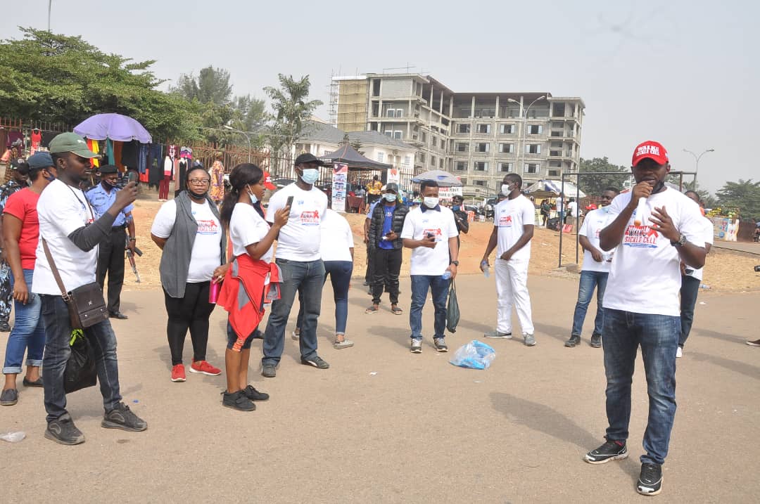Founder, Valuechan Sickle Cell Foundation, Alhaji Musa Bashir Usman, Chairman Society for Petroleum Engineers International Abuja Chapter’s 10th Anniversary organising committee, Dr Ikechukwu Okafor, leading other dignitaries on a ‘Walk for Sickle Cell’ from Berger Roundabout – Jabi lake park in Abuja, as part of activities to commemorate the chapter’s Anniversary.
