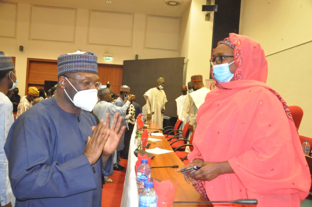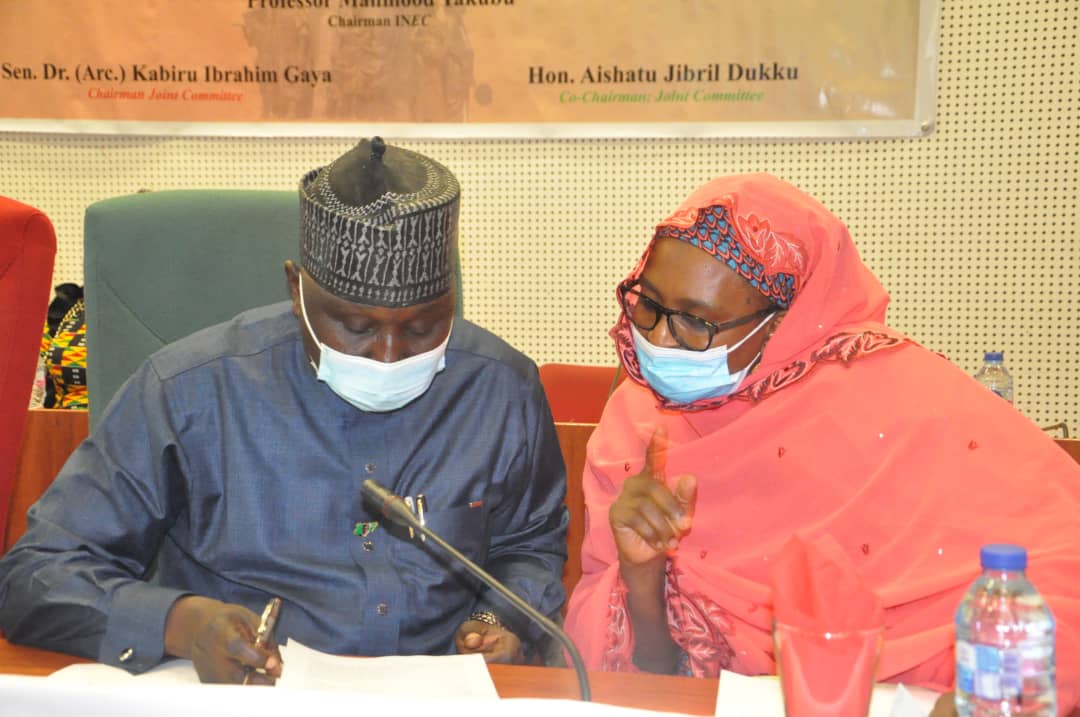PIX 2: From L-R: House Leader House of Representative Alhassan Ado Dogowa with Chairman, Committee on Electoral Matters Hon. Aishatu Dukku Jibrin during the Joint committee on INEC and Electoral Matters at NASS in Abuja. Photo: BASHIR BELLO DOLLARS.
