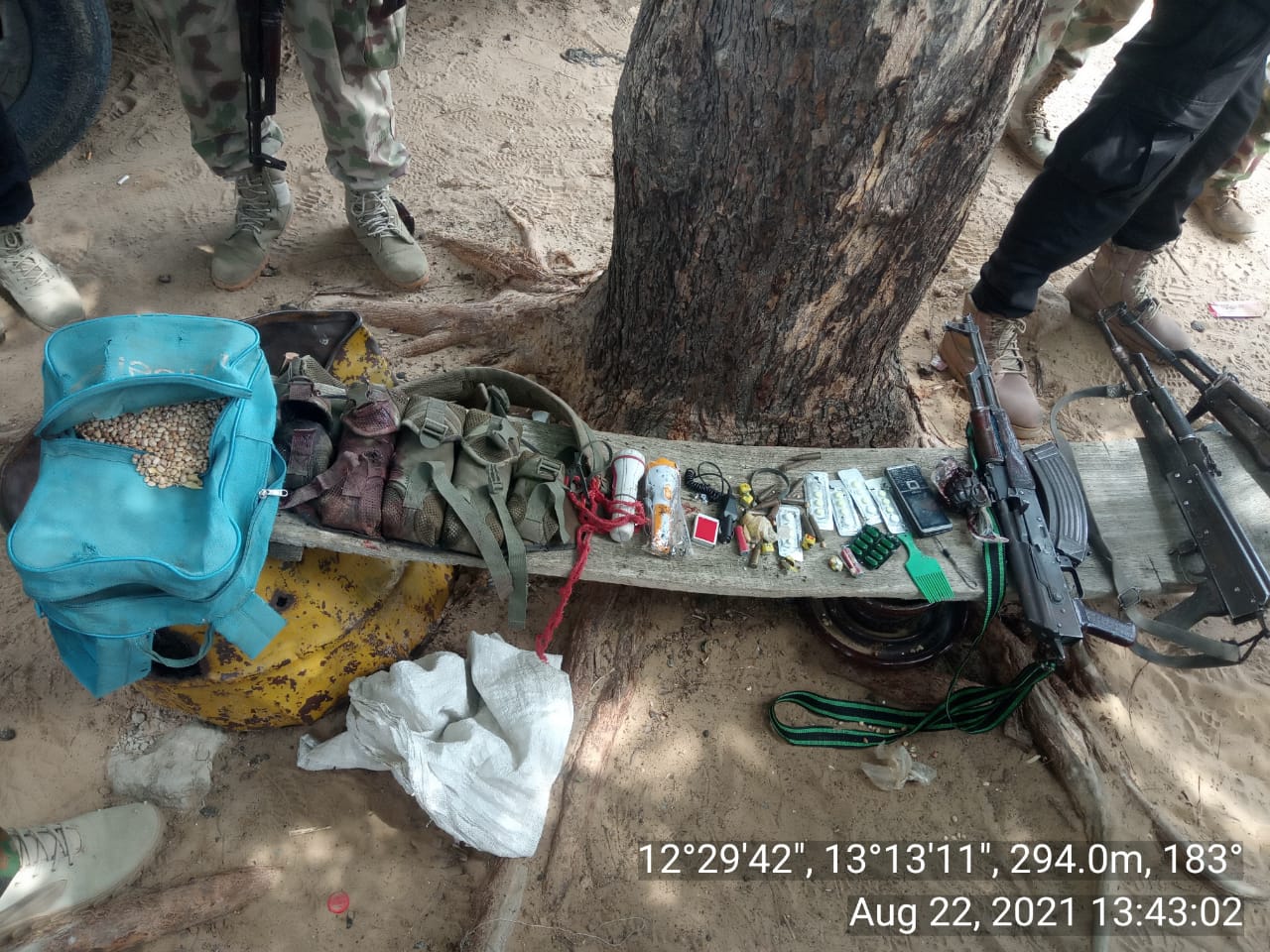 The items recovered are:* 3 X AK 47 rifles* 10 X 7.62mm special rounds* 1 X 36 HG* 1 X Magazine Carrier* Assorted drugs* 1 X Hair comb* 1 X car charger* 2 X touch light* 1 X Techno phone set* A bag of beans