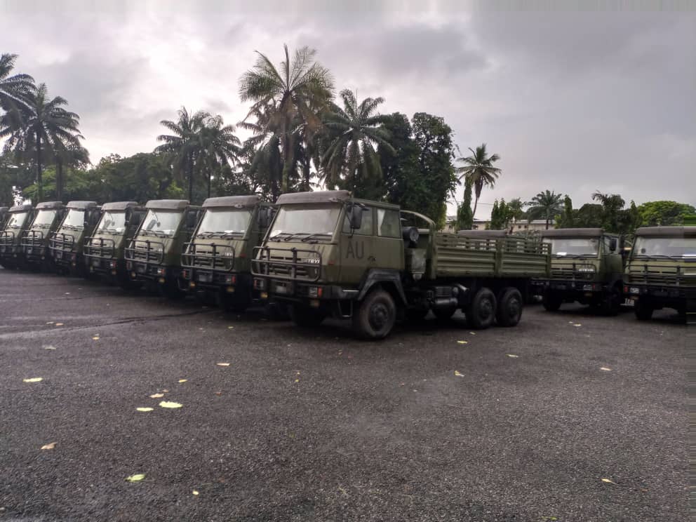 Thereafter, the FC and his entourage were given a guided tour of the CLB where equipment in the Base were displayed. The equipment included assorted military equipment including armored personnel Carriers , troop carrying vehicles, water tankers, and other combat support equipment.
