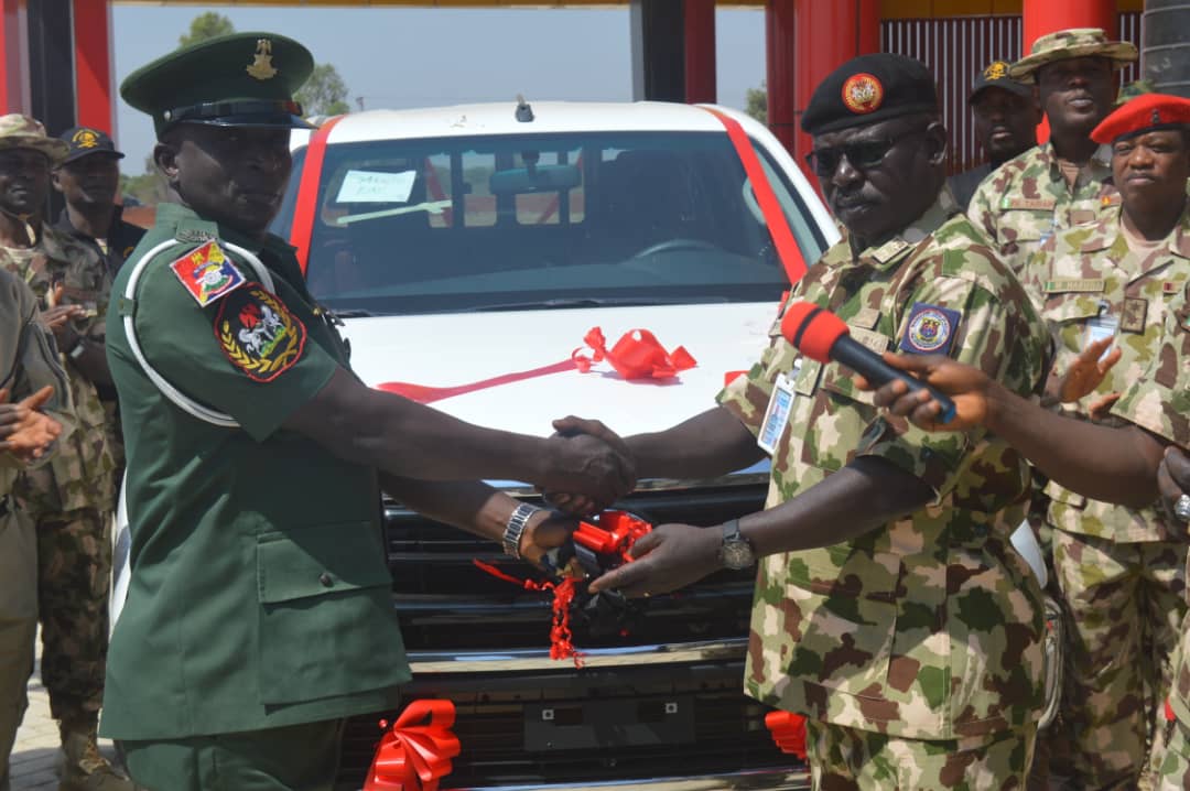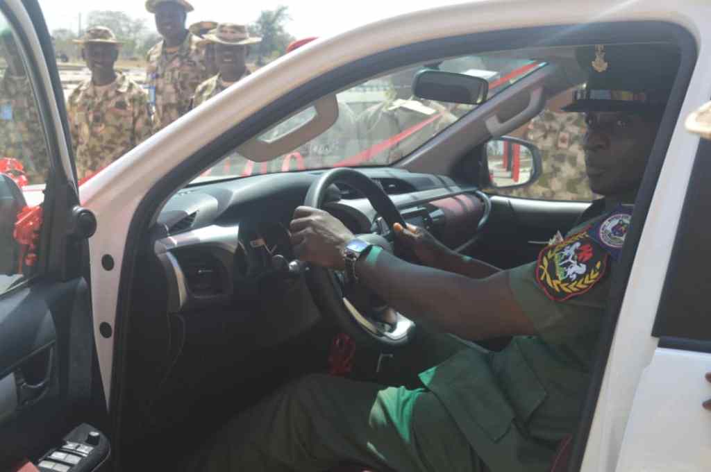 In furtherance of activities that marked the just concluded Armed Forces Remembrance Day Celebration (AFRDC) 2022, the Chief of Army Staff (COAS) Lieutenant General Faruk Yahaya has presented a brand new Toyota Hilux vehicle to Army Warrant Officer (AWO) Ajao Adetona, the Regimental Sergeant Major (RSM), Nigerian Army School of Artillery (NASA), Kachia.