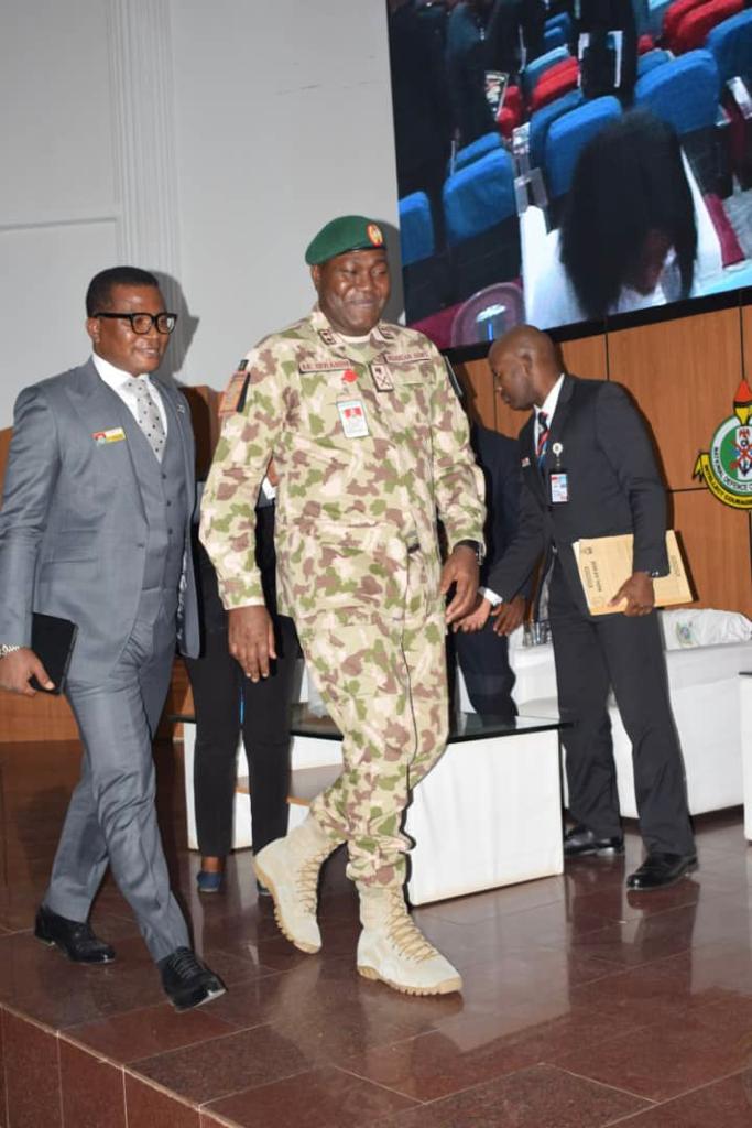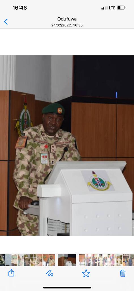 The Force Commander (FC) Multinational Joint Taskforce (MNJTF) Major General Abdul Khalifah Ibrahim delivered a lecture on Thursday 24 February 2022 at National Defence College (NDC) Abuja entitled “Counter Terrorism/Counter Insurgency Operations and National Security in Nigeria:The MNJTF In Perspective”to the participants of NDC course 30. The FC in the lecture gave the background, force structure and operational achievements of the MNJTF.