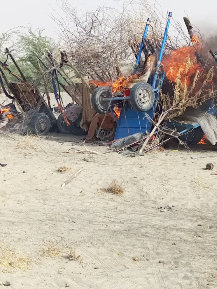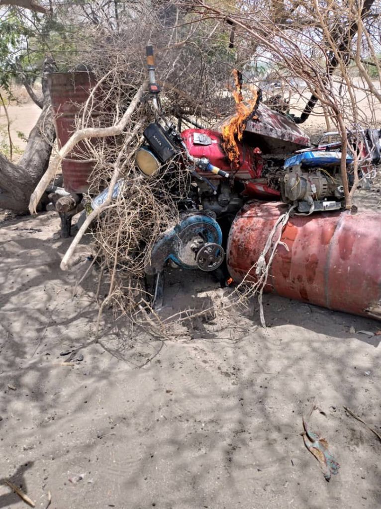 It is obviously a big Boko Haram /ISWAP camp having another large IED making and vehicle borne IED making factory that was cleverly camouflaged to prevent detection from the air. In a related development, the MNJTF troops on clearance patrols in the general areas of Kimeguna near the Lake Chad in Niger republic accosted BHT/ISWAP logisticians ferrying Four Hundred Fifty Seven (457) bags of fish in several carts. The bags of fish were immediately destroyed in line with the MNJTF Standing Operating Procedure, while the suspects are being profiled.