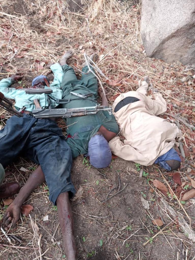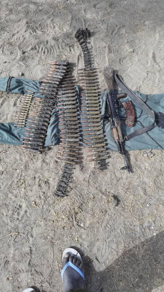 The ATF identified intelligence driven targets which they engaged using multiple sorties in the vicinity of Tumbun Fulani and Tumbun Rago, where about twenty terrorists were neutralised. Ground forces then advanced and reached Tunbun Fulani but could not access Tunbun Rago due to marshy terrain. The criminals on sighting the advancing troops fled and abandoned their check point, pulled off their uniforms and left their rifles and other equipment behind. Tunbun Rago was found deserted with Boko haram corpses and a shallow grave containing Boko haram corpses discovered, as the criminals beat a hasty retreat. Relatedly, the MNJTF Nigerien troops of Sector 4 while on patrol in the general area of Ngagam – Kabalewa and N’guigmi engaged a group of fleeing terrorists, neutralised five BHT/ISWAP insurgents, destroyed two Gun trucks and large stock of arms and ammunitions were recovered. Sadly, one soldier paid supreme sacrifice and few others were wounded in action, currently receiving treatment at a military hospital.