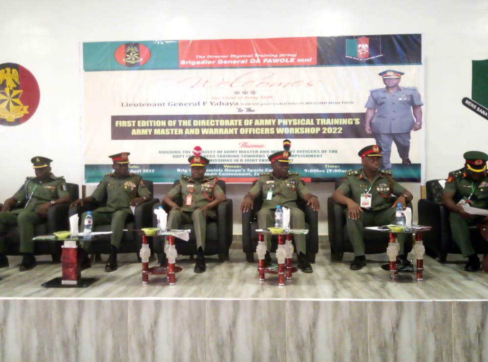 He said the workshop aimed at enhancing capacity of Warrant Officers cadre of the Physical Training (PT) was with a view to ensuring provision of quality and desired complimentary efforts to the functions of other levels of leadership for fitness training in the Nigerian Army (NA).