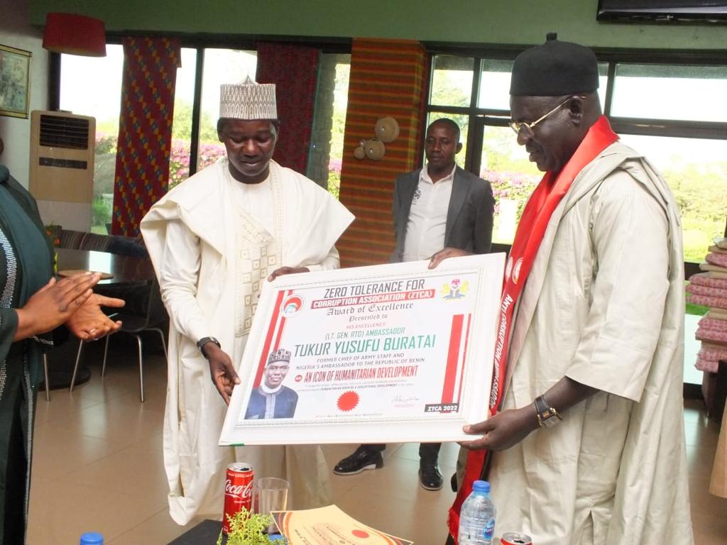 Former Chief of Army Staff, His Excellency Ambassador (Lt. Gen. Rtd) Tukur Yusufu Buratai CFR Garkuwan Keffi, has again bagged another Award of Excellence, an icon of integrity award by the Zero Tolerance for Corruption Association.